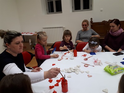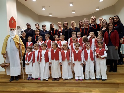 U srijedu i četvrtak (29. i 30.11.) je naš Vrtić bio organizator. Djeca, roditelji, djedovi i bake oduševljeno su sudjelovali u izradi božićnih tradicijskih ukrasa i čestitki. Tema naše božićne radionice je bila „Kulturna baština našega kraja“. U skladu s tim su djece predškolske skupine izvela tradicijski folklorni ples uz nikolinjske pjesme. Zahvaljujemo mamama predškolske skupine koje su za ovu priliku oformile pjevački zbor. U lijepom i veselom ozračju izradili smo prekrasne božićne ukrase kojima ćemo ukrasiti vrtić i dijeliti građanima u okviru akcije „Darujmo osmjeh gradu“.